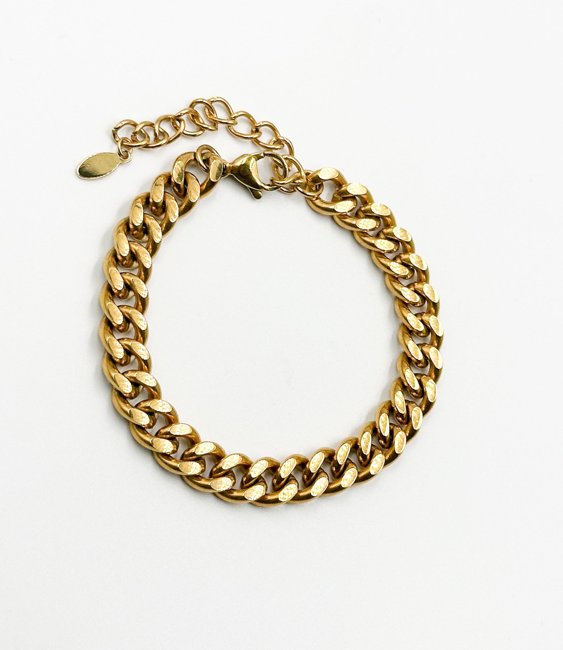 Met z’n bold links en gouden shine is dit dé armband die kracht en status uitstraalt. Een tijdloos design dat nooit uit de mode gaat van old school hiphop tot moderne luxury streetwear. Draag ’m solo voor impact of stack ’m met je watch voor de full flex.